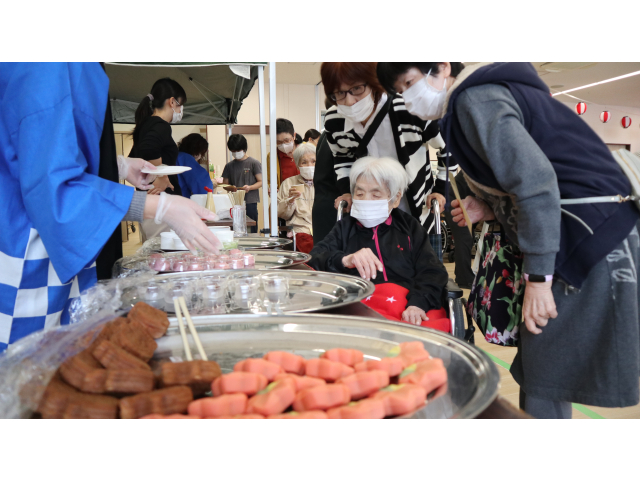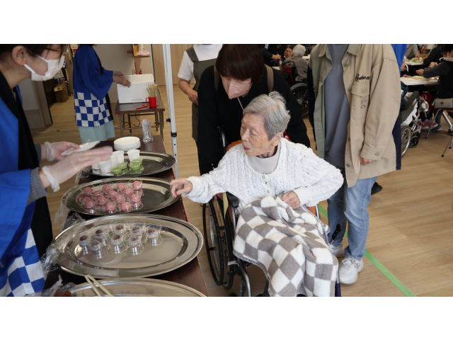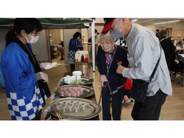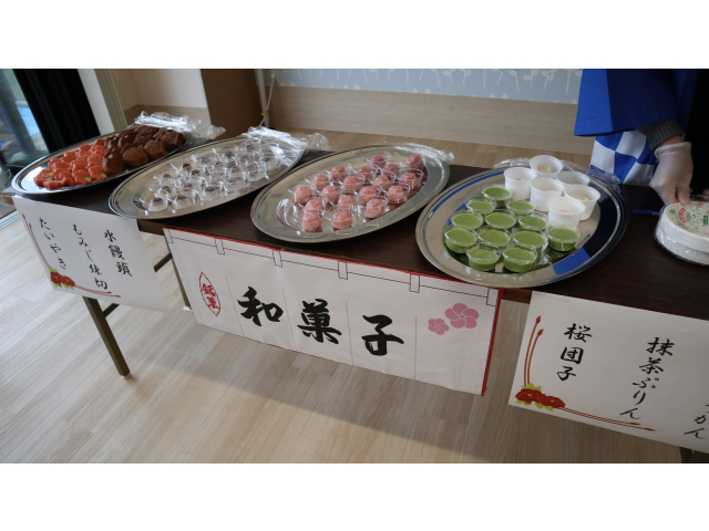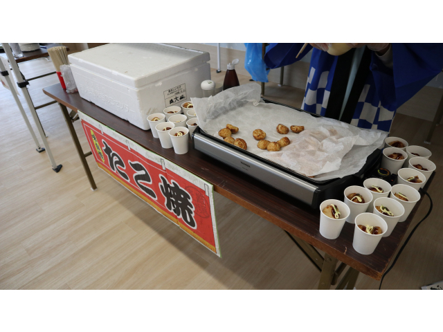グルメ屋台では、お好きな和菓子をバイキング形式で2種類選んでいただき、たこ焼き、コーンスープと温かい食べ物をご用意いたしました╰(*°▽°*)╯