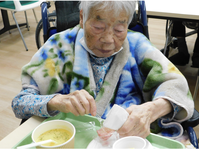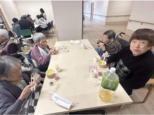 「可能な感染対策を行いながら」と言いつつ、午前中は外から吹き込む冷たい風に入居者様を中心に「寒い、寒い」の大合唱で風邪をひかないか心配になってしまう状況😢