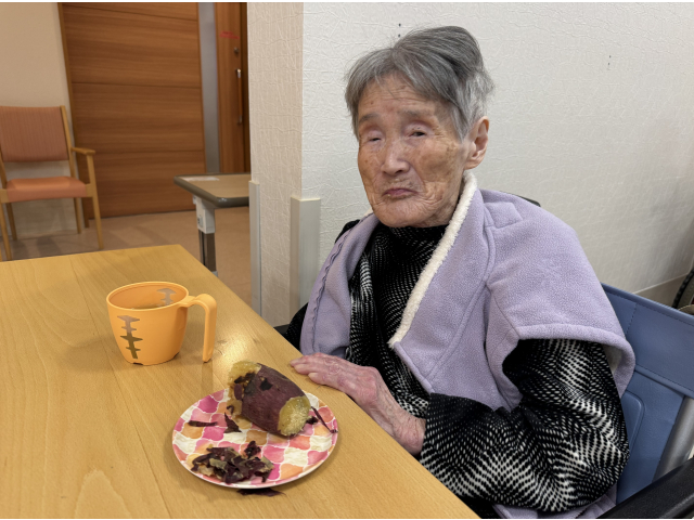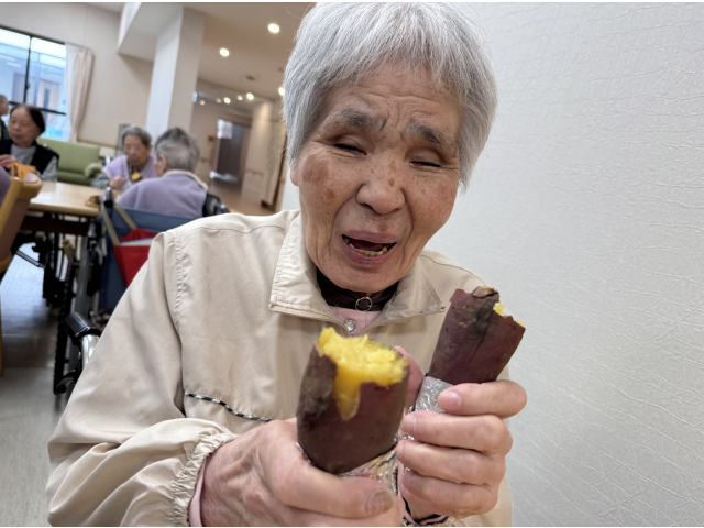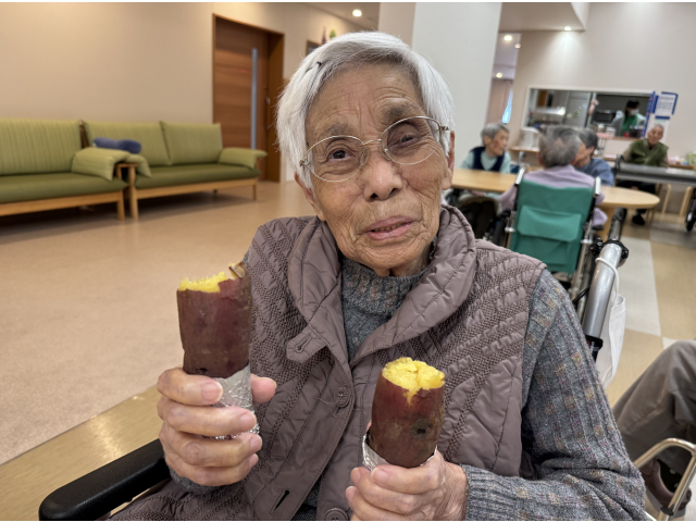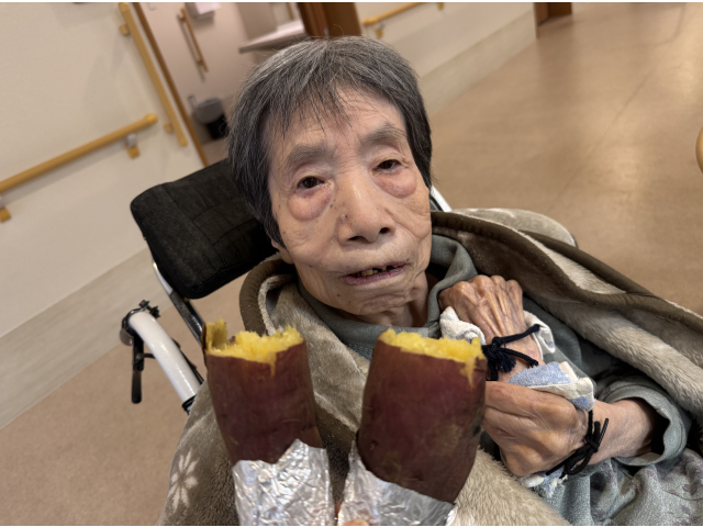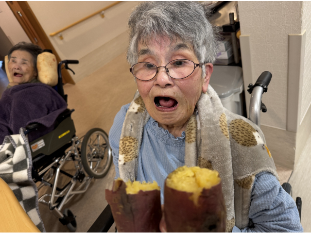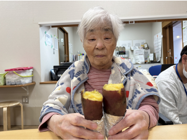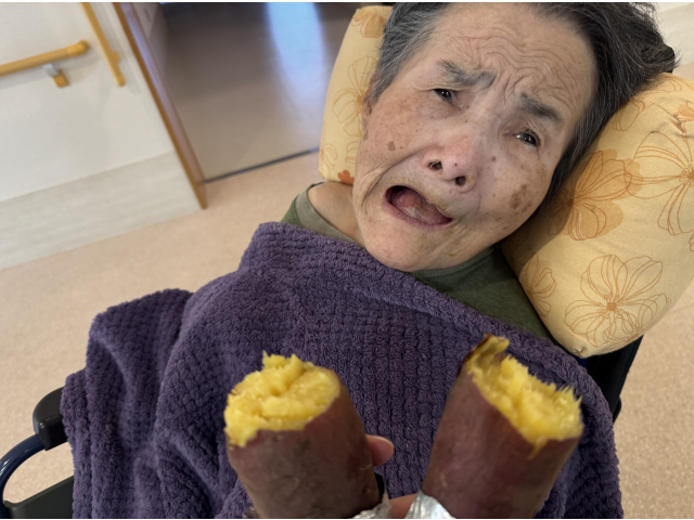 普段は食事があまり進まない方も、やきいもを見るだけで口を開き、やきいもに手を伸ばし、すごくいい笑顔を見せてくれました💕