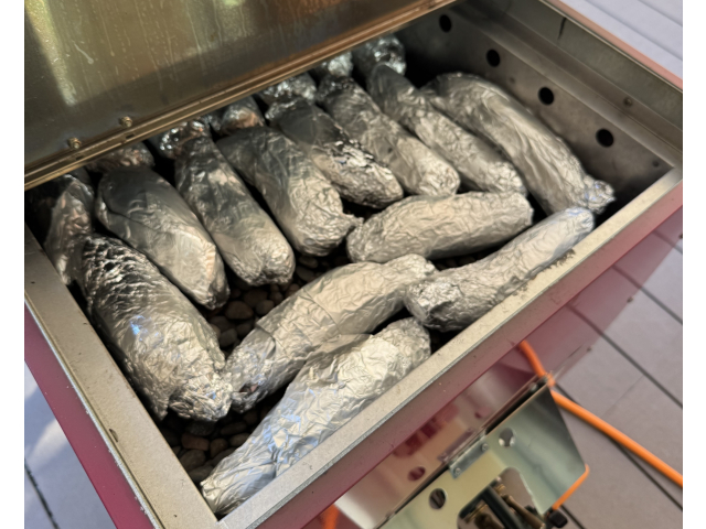 朝からさつまいもを洗って、濡れ新聞紙とアルミホイルで包み、
