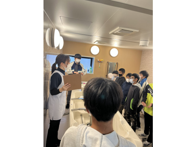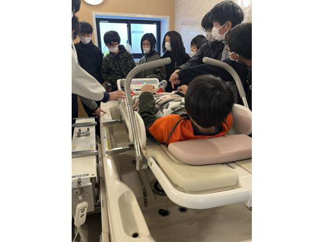 初めて見る横になったまま入れる特殊なお風呂や介護ロボットに興味深々🤔
