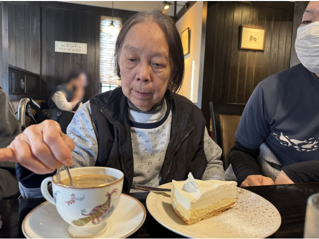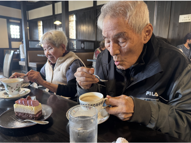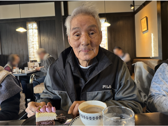 男性の入居者さんは、本日が86歳のお誕生日ということでコーヒーにケーキを付けて皆さんでささやかにお祝いしました(❁´◡`❁)