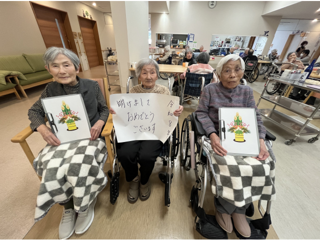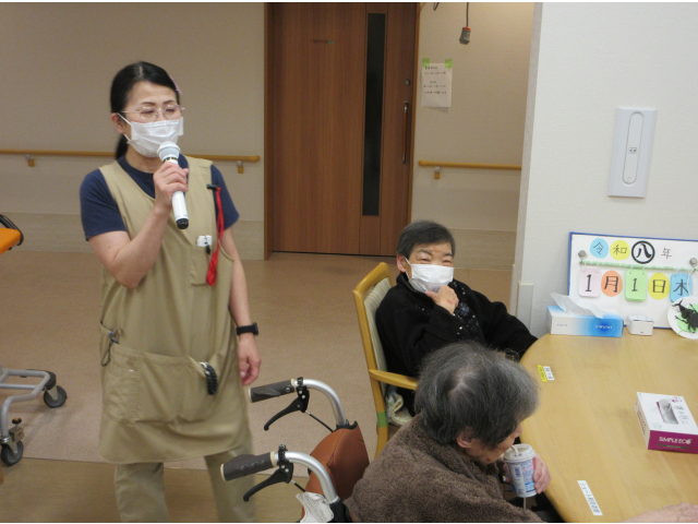 まずはフロアの介護主任よりごあいさつをさせていただき、入居者様数名に今年の抱負を語っていただきました✨