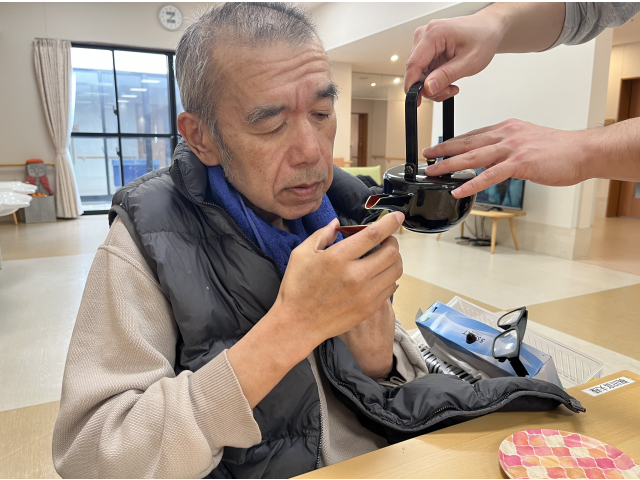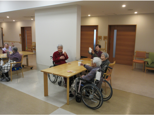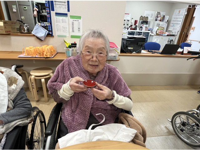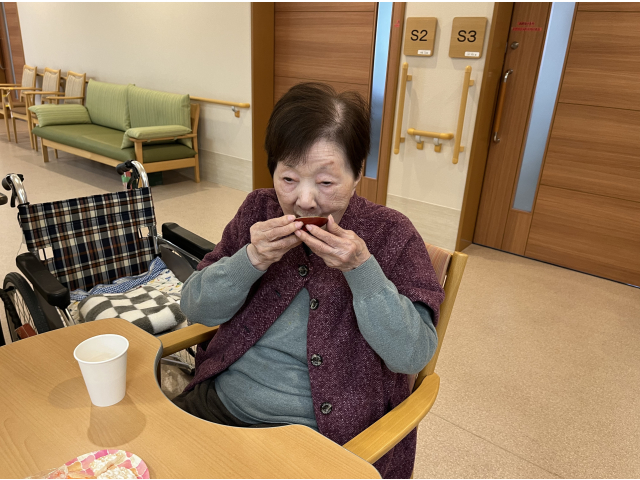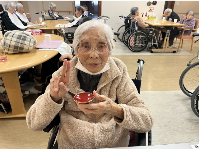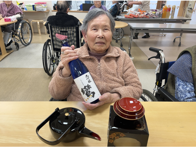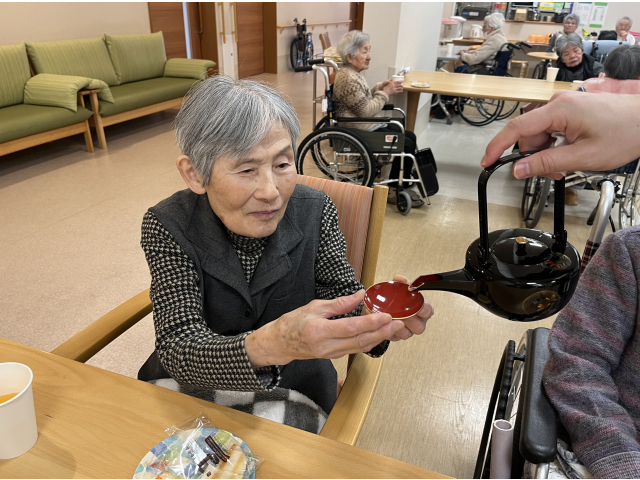 お屠蘇セットで、お酒が苦手な方も、恒例の「明けましておめでとうございます。」と声を掛け合いながら、お酌のまねっこをして、嗜むふりで、皆さん、気分を楽しんで下さいました。