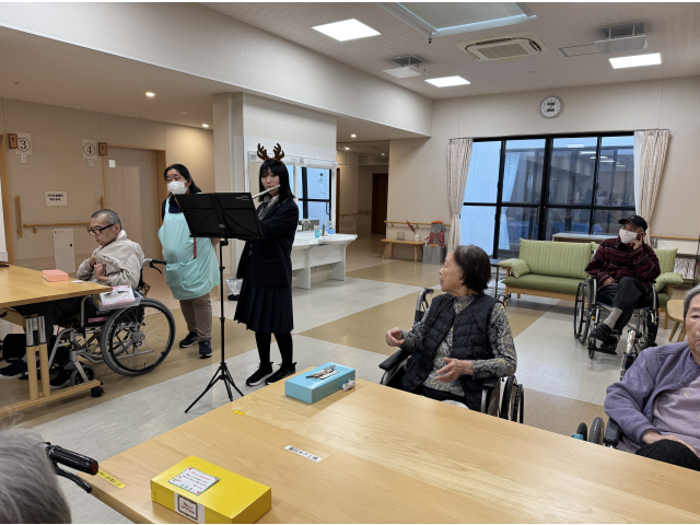 今年はボランティアで学生さんがクリスマスソングをフルートで演奏して各フロアを回り、その場の雰囲気を盛り上げてくださいました(❁´◡`❁)