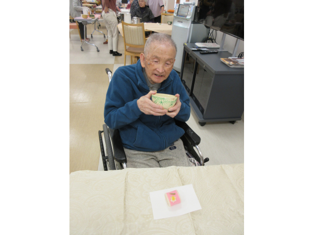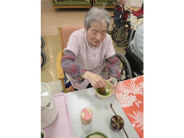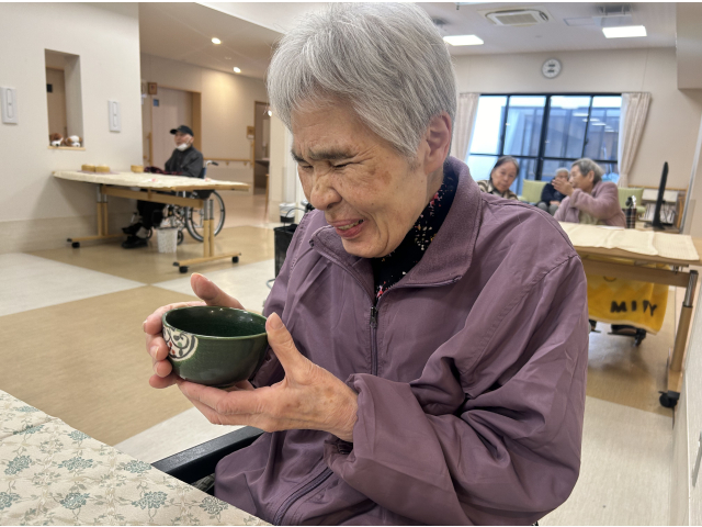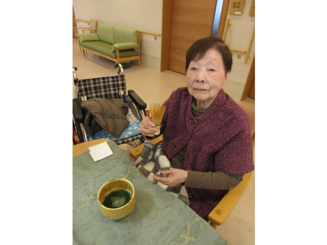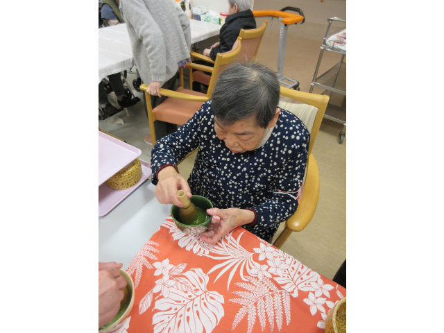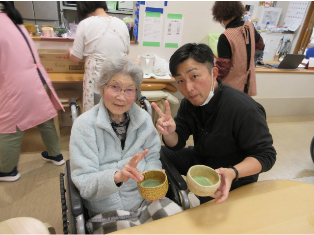 楽しんだ後は職員のために、入居者様に点ててもらい、職員も「結構なお点前で!」の味わいを満喫させていただきました🍵