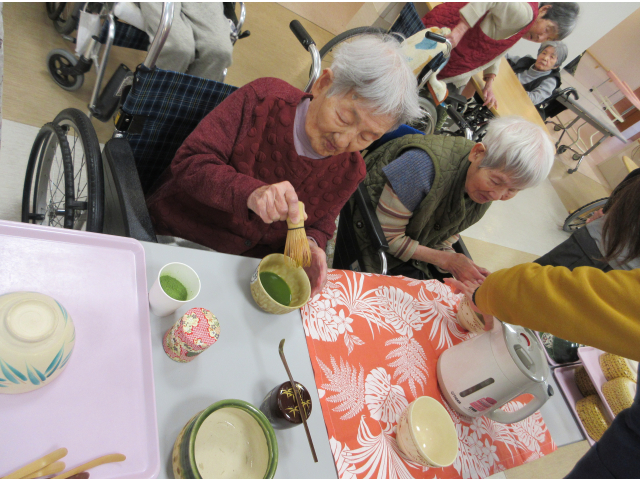 今日のお抹茶会は、面会に来てくださっていたご家族様も飛び入りでお手伝い頂き、誠にありがとうございました。