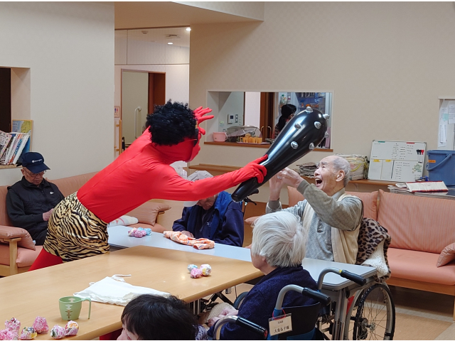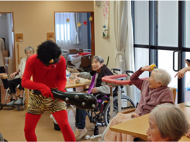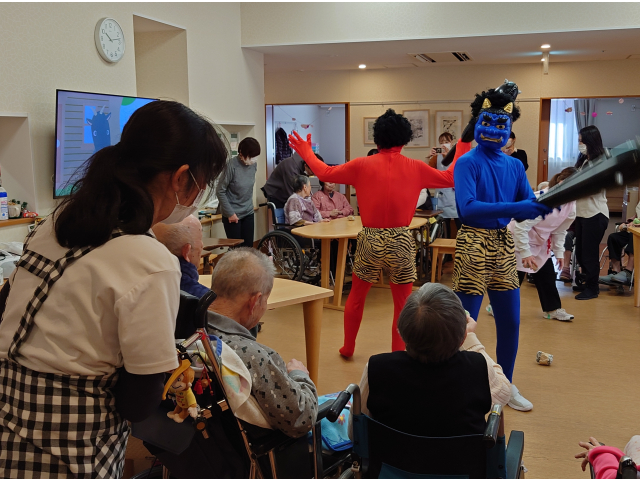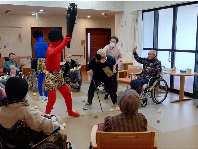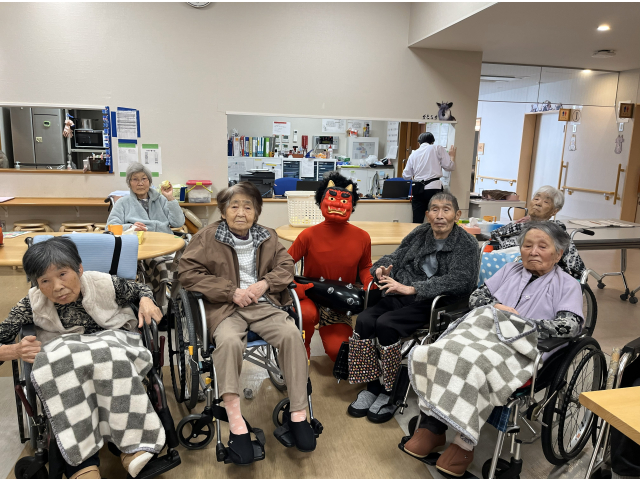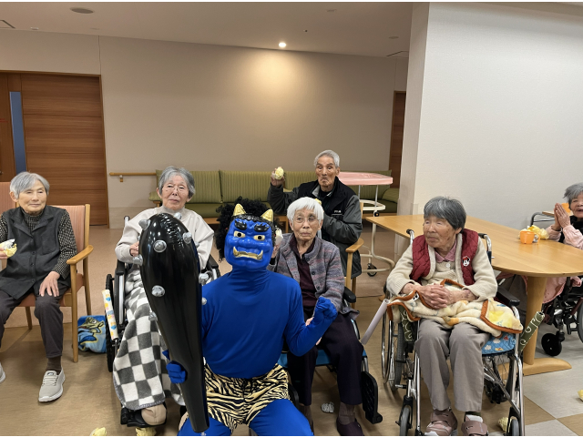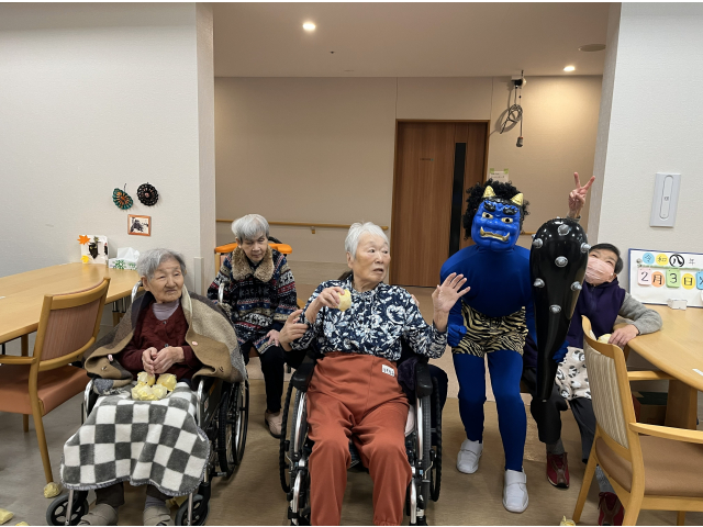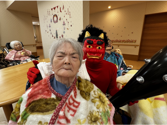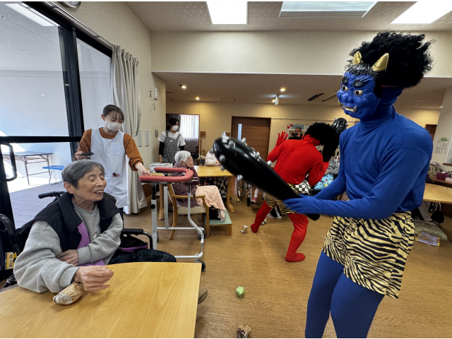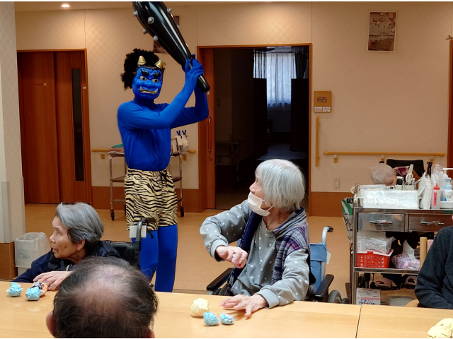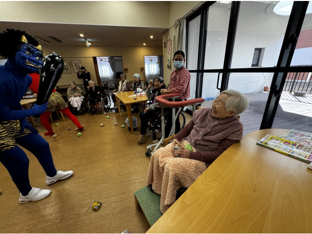 2月3日、節分会を行いました! 瀬戸苑では、お手製の豆ボールを投げ、鬼退治を行い邪気を払いました😊