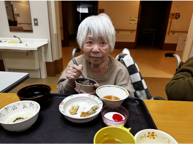 お祝いの赤飯や天ぷら等、いつもよりご馳走です✨😊