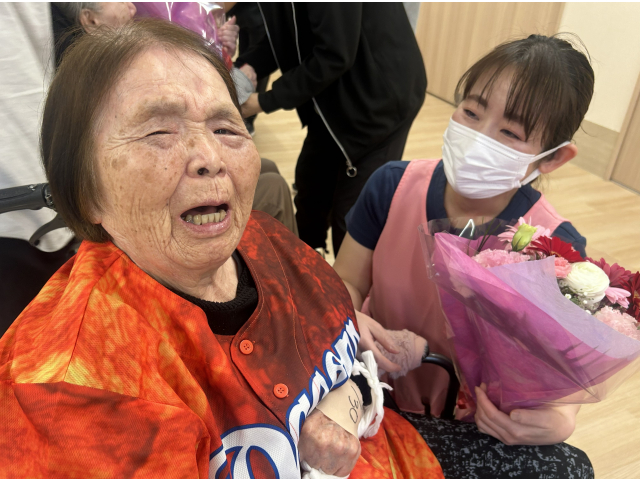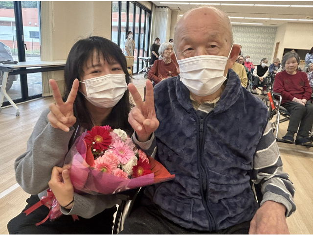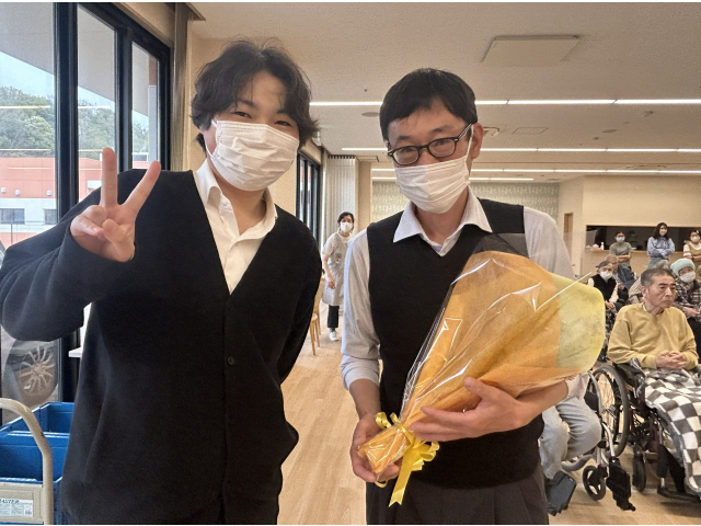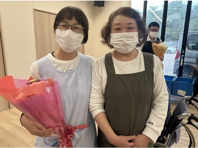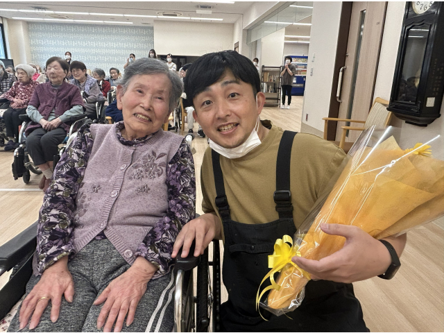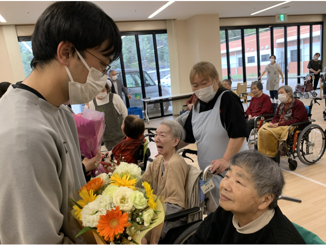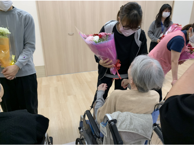 職員一人ずつ入居者の皆さんへ最後のご挨拶🎤 花束の贈呈では、お世話になった職員さんとお別れの涙😢や笑顔😀