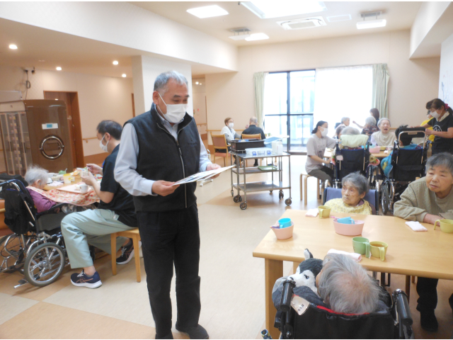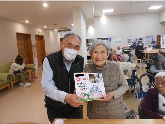 苑長より4月生まれの入居者さんへ恒例の色紙をプレゼント🎁
