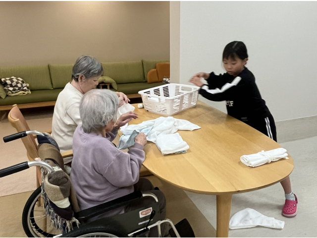 洗濯物がたまれば、一緒に畳みます。