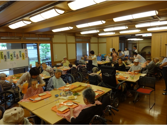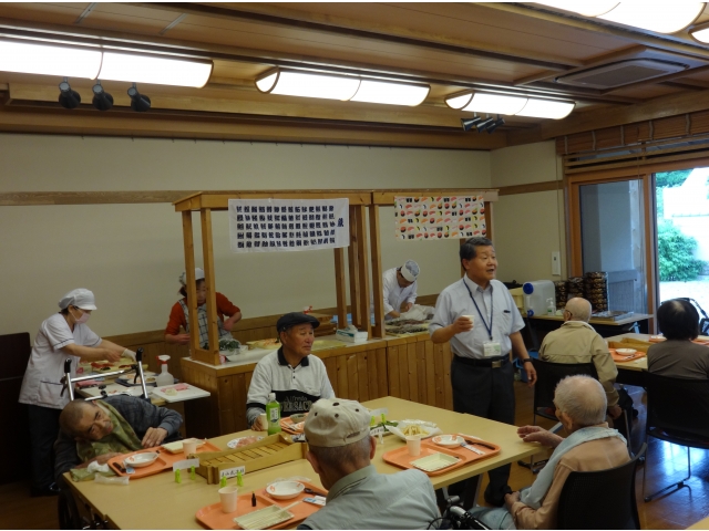 町内の寿司屋の職人さんに、当苑のパーティ会場で握ってもらい、できたてのものを召し上がっていただきました。