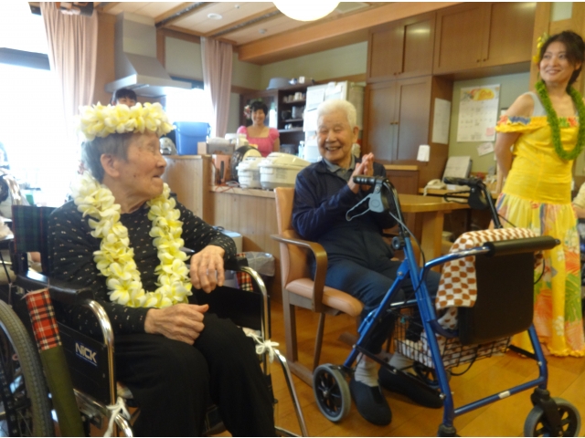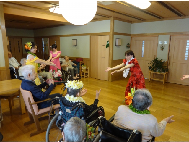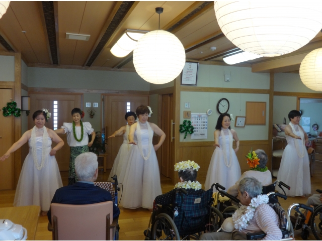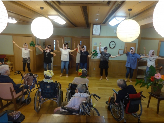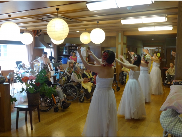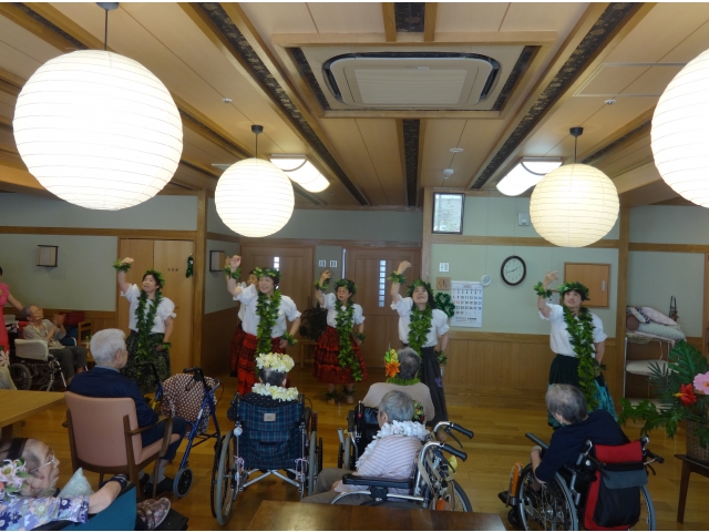 7月12日、風の家ではフラダンスサークルの皆様にご協力いただき、ハワイアンパーティーを行いました。 フラダンスを鑑賞したり、一緒に踊ったりして参加者全員で楽しむことができました。