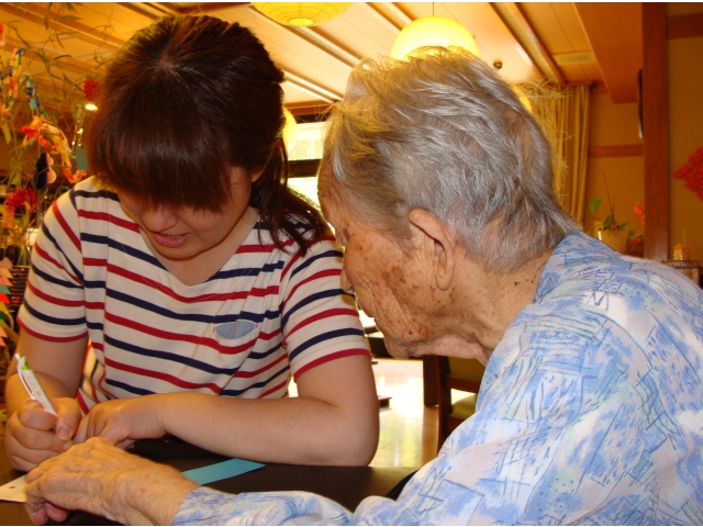 皆さんに短冊に書くお願い事を聞いてみたのですが・・・「お金持ちになりたい!」100歳を超えてもお金は大事です(笑)「みんなと仲良く過ごせますように」には、ほっこりと温かい気持ちになりますね。