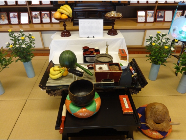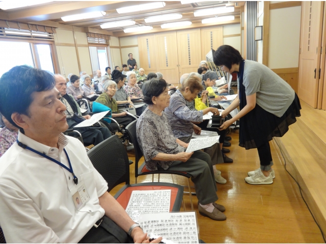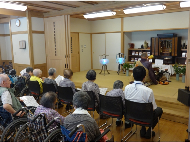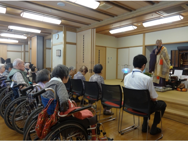 福田寺の住職さんにお越しいただき、入居者の皆さんと共に般若心経を唱え、この1年にお亡くなりになった入居者様のご冥福をお祈りしました。