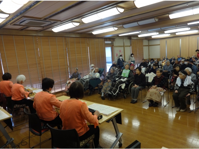 11月28日、愛厚ホーム設楽苑では、かきつばた会の皆様による大正琴の演奏が行われました。