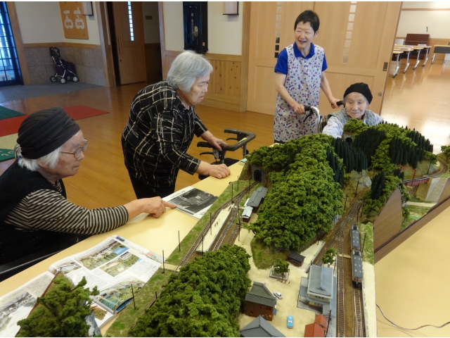 7月21日、田口線の模型の展示をしていただきました。入居者の皆様は模型でみる懐かしの光景に身を乗り出して大変興味深い様子で昔話に花を咲かせていました。