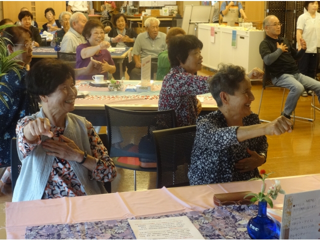 9月18日、愛厚ホーム設楽苑では、今年度4回目のよってみんカフェ(認知症カフェ)を開催しました。 今回は、当苑の浅井理学療法士による脳トレ体操を行いました。参加された方と一緒に座りながら体を動かし、とても有意義な時間となりました!