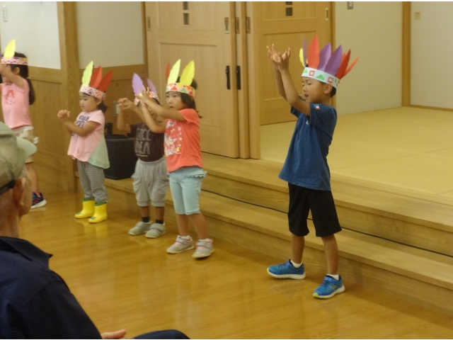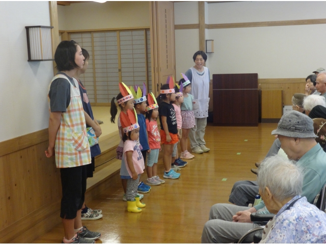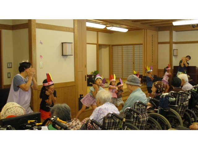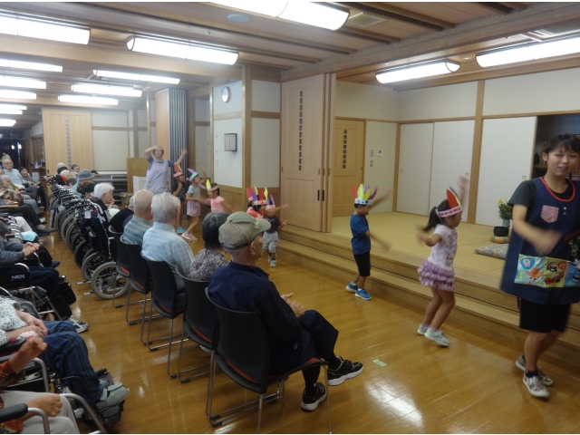 愛厚ホーム設楽苑のすぐ隣には、清嶺保育園があります。今回は園児さん7名が運動会で披露する予定の『パプリカ』を披露しに来てくださいました! 園児の皆さんのパワフルでキュートな踊りを入居者様はとても楽しそうに見ていました。