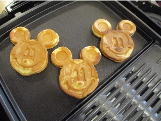 かわいい「ミッキーマウス」のパンケーキに、クリーム・シロップ・フルーツ・チョコを乗せてから、「いただきまーす!!!」
