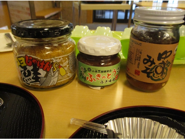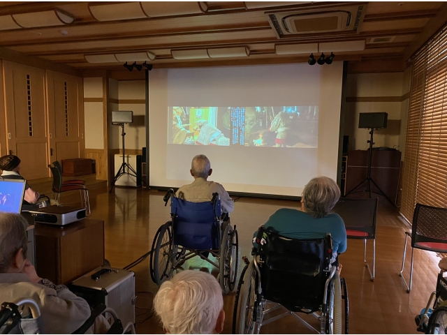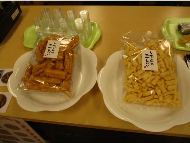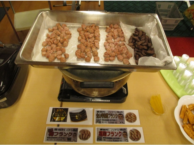 道の駅内で売られている特産物が食べられたり、郷土資料館で上映されている設楽町の風景やお祭りの風景のDVDをお借りし、設楽苑内で上映しました。