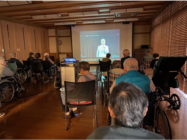 緊急事態宣言下の中、今月もオンラインレクに参加しました。本日は、吉本お笑い介護ブ!による、オール巨人のリモートコンサートでした。オール巨人と共に、一緒になって口ずさんだり、大きな声を出したりして、歌っている方も見えました。中には、心地良かったのかウトウトしていたり、寝てしまっている方もいたり、、、また、参加しましょう~