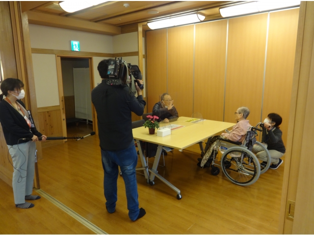 今日はその様子をCBCテレビが取材に来苑し、入居者様ご家族や苑長へのインタビューと、面会の状況を撮影されて行かれました。