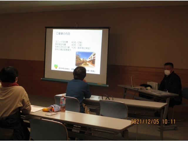 講座の中で設楽苑の現状と介護の仕事内容、今施設に求められているものなどを説明させていただきました。
