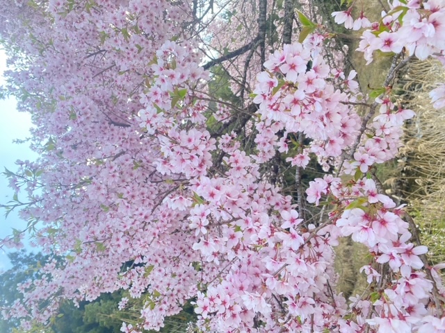 平地ではすでに桜の花びらが散り、みどりの葉っぱに様変わりしている桜の木ですが、名倉では満開に桜が咲いていました。