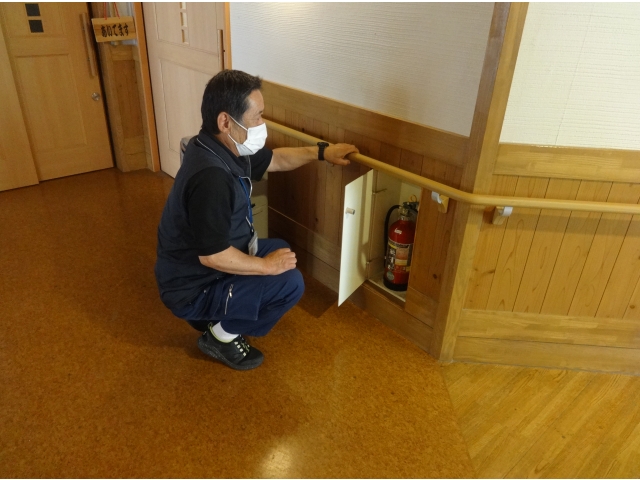 今日は1階-せせらぎの家、すずかぜの家の、消防用設備の点検と自家発電機の使用方法の確認を行いました。