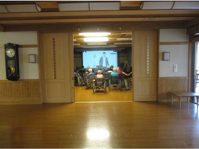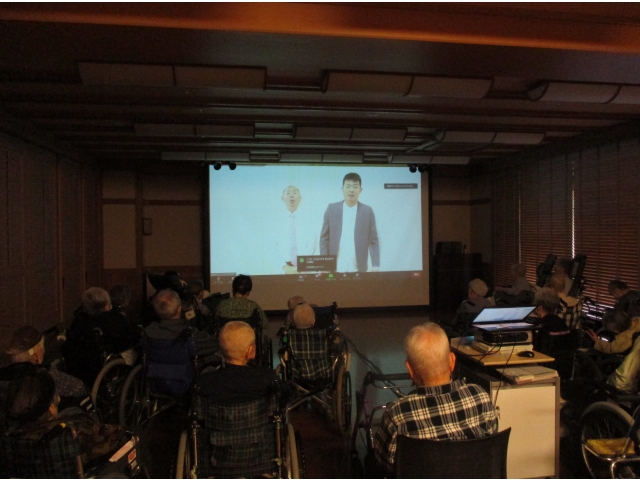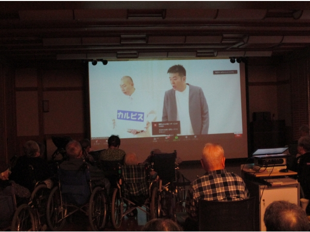 依然として続くコロナ禍で、外出や外泊も出来ず退屈な施設生活を送っている入居者さまに、少しでも楽しい時間を過ごしていただこうと 吉本興業レギュラーによるオンラインお笑い介護レク へ参加しました。30名程の入居者さまが参加され、漫才コンビ「レギュラー」の楽しいトークと簡単なミニゲームで体を動かし、いつもとちょっと違う、楽しい午後のひと時を過ごしました。