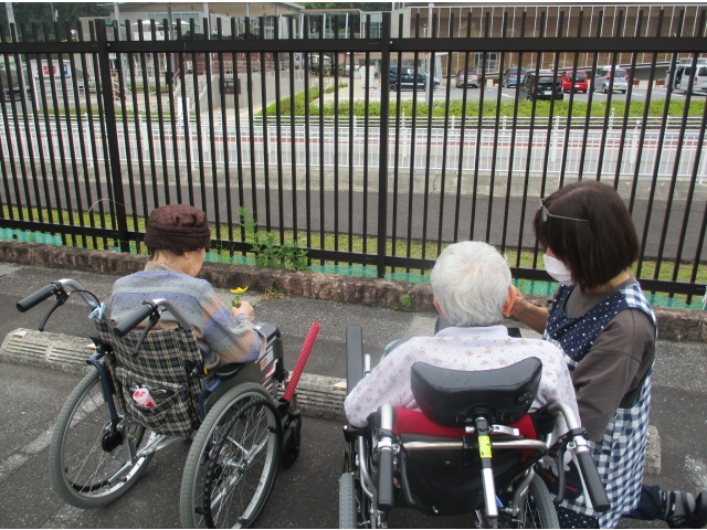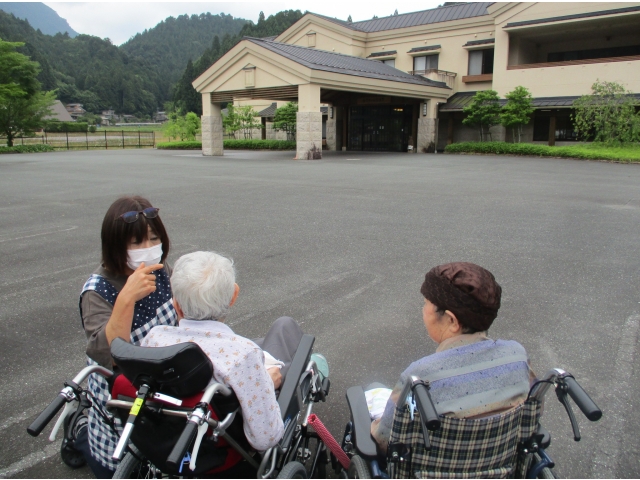 外を散歩する方もいました。「道の駅」を見たり、山の空気を吸ったり、おやつも持って行き食べました。梅雨の合間に、いい息抜きが出来ました。