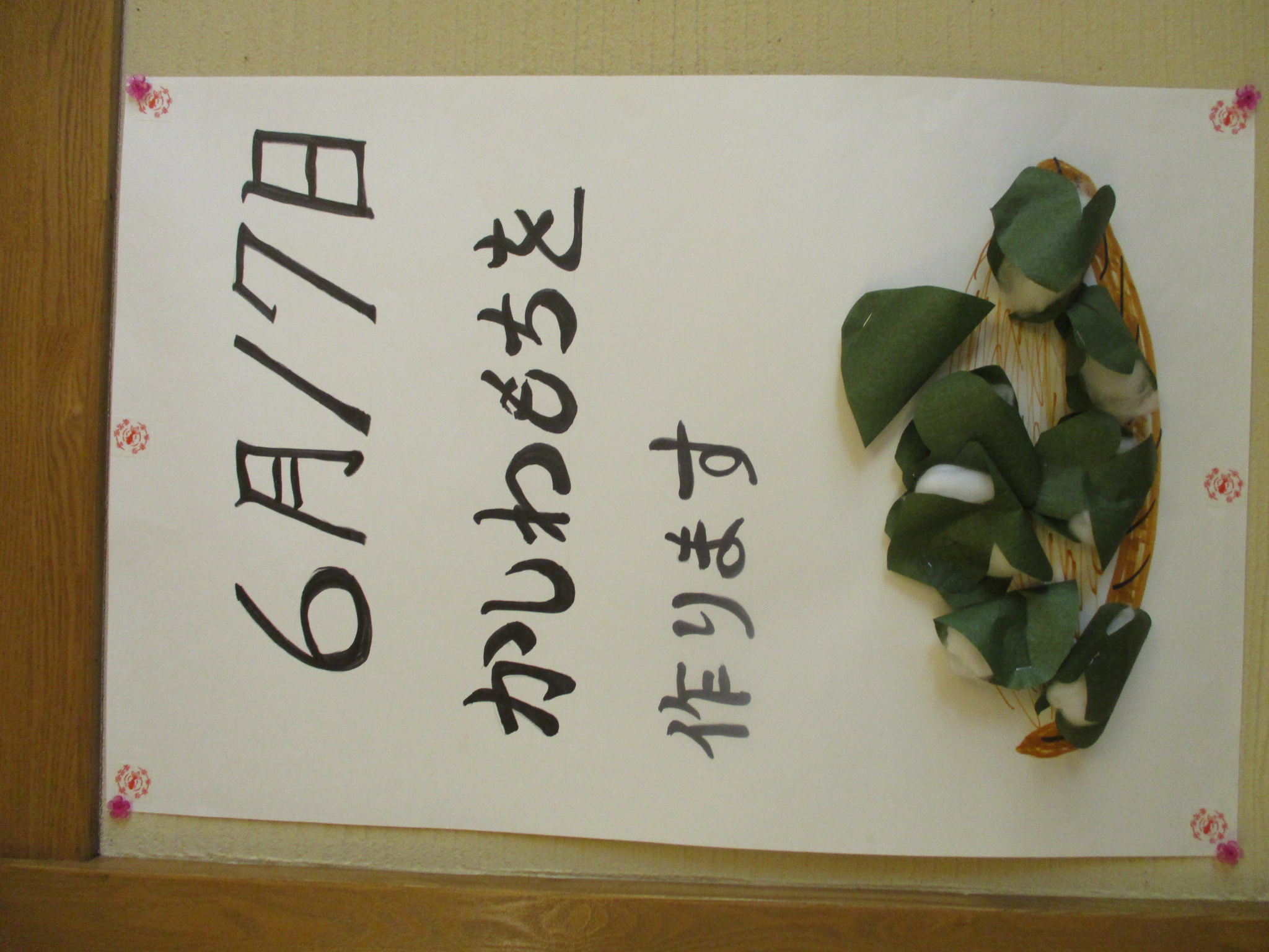 先日、ある入居者様とお話する中で「柏餅が食べたい。」と言われたことから「だったらみんなで作ろうよ!」と盛り上がり、今月のユニット行事は“柏餅づくり”になりました。