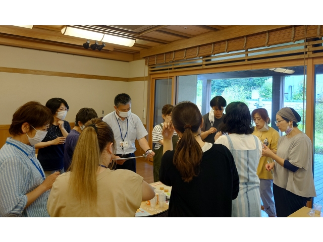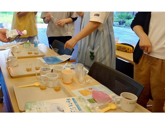 薄い・普通・濃いの3種類のとろみをつけた麦茶を試飲しました。