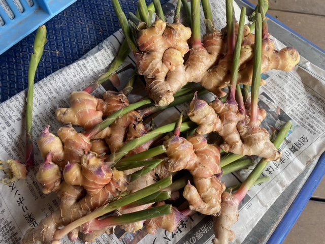サツマイモと里芋、ショウガは職員と元職員からの寄付で