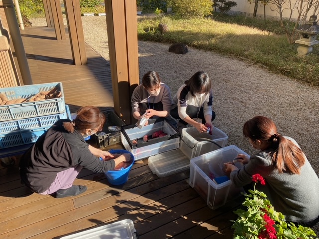 サツマイモを一つひとつ手洗いし、試し焼きもしました😘