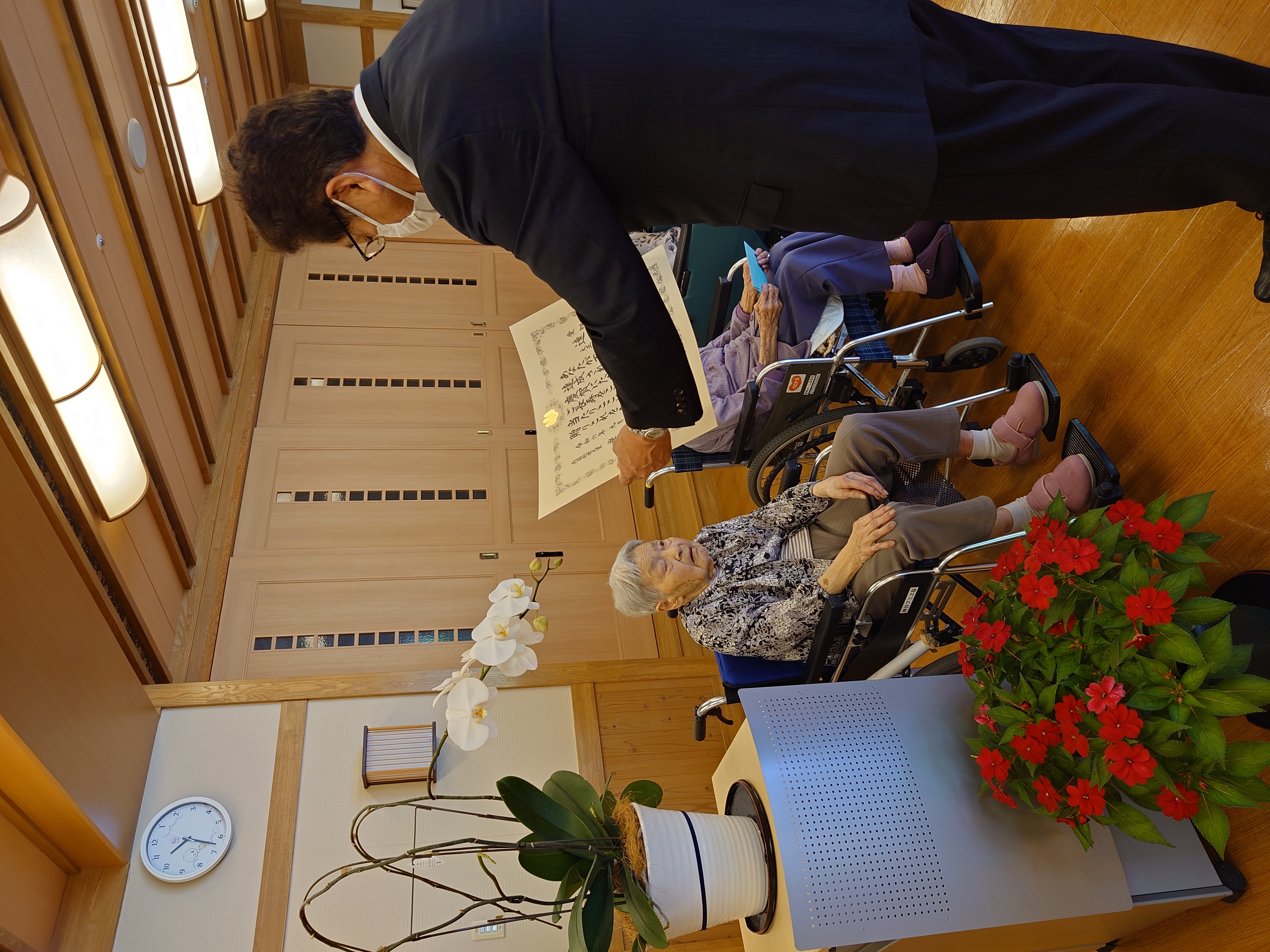 設楽町長さんより、100歳以上の方にお祝いをいただきました。 設楽苑には100歳以上の方が7人…最年長の方は107歳です! これからも、お元気でいてください✨ (設楽苑 広報担当)