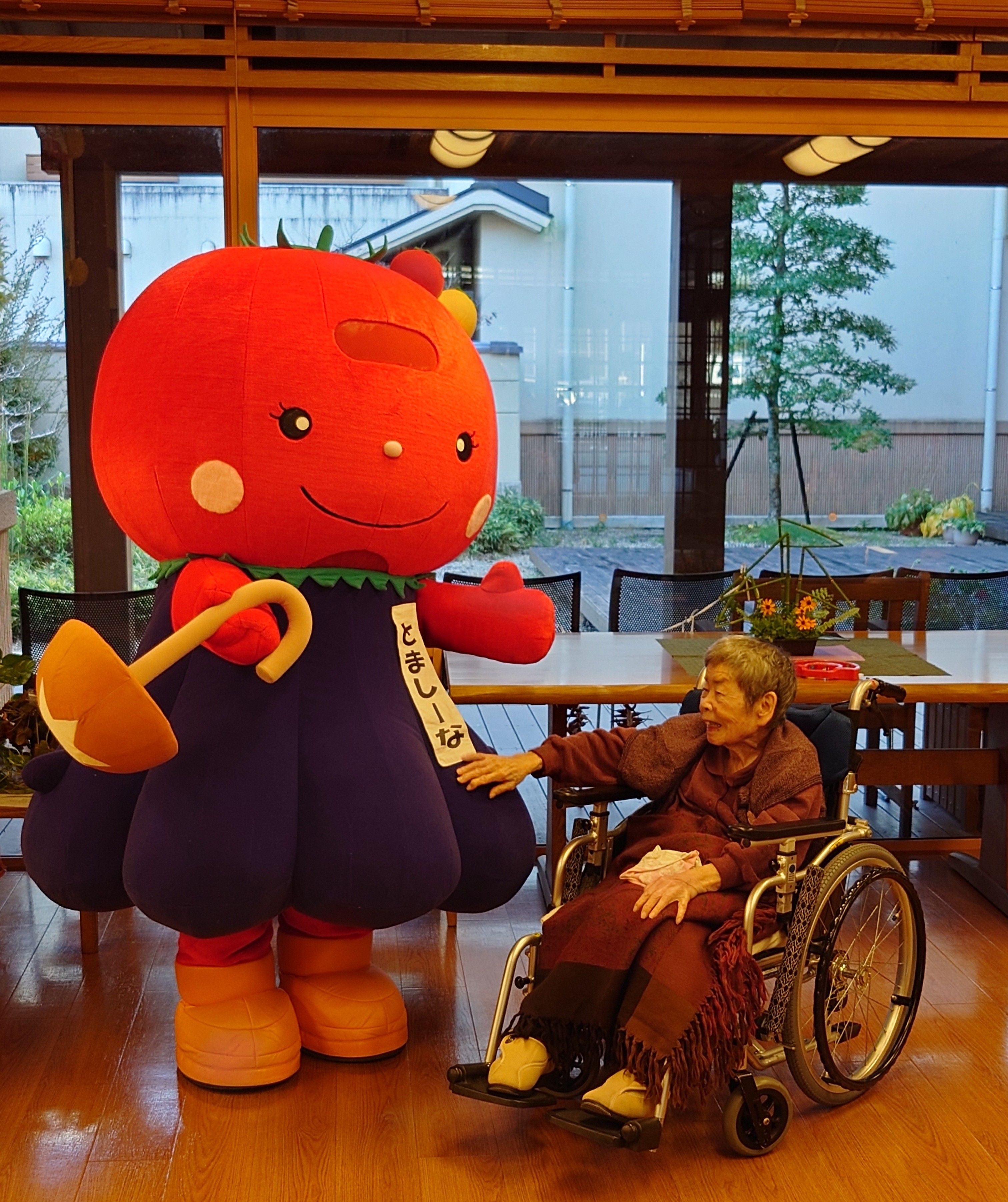 11月18日に、50周年行事の一環として秋水祭を行いました。 設楽町のキャラクターであるとましーなちゃんにお越しいただき とましーなちゃんにちなんだ トマト🍅、しいたけ、なす🍆を使ったグラタンや 鹿肉の大和煮のおにぎりなど 設楽町ならではの味覚を味わい、とましーなちゃんと記念撮影もしました! とましーなちゃんがかわいく盛り上げてくれて 楽しい一日になりました! (設楽苑広報担当)