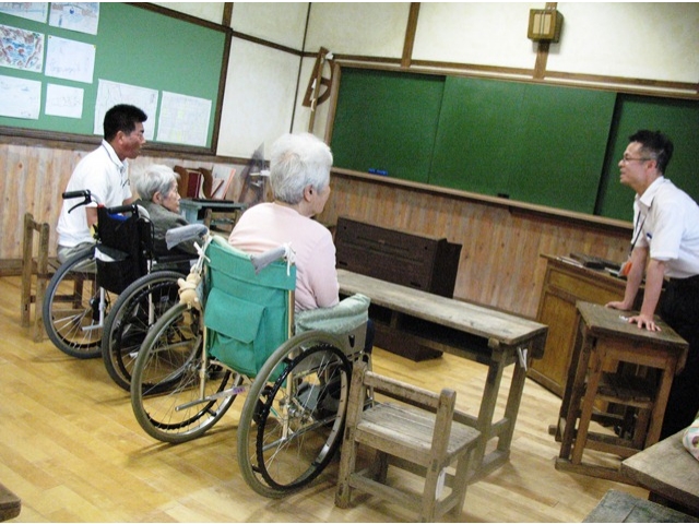 東郷苑では月1回利用者さん2~3名が東郷町役場に隣接する昔体験館(いこまい館内)に出向き役場の長寿介護課の本多さん進行のもと行っています。