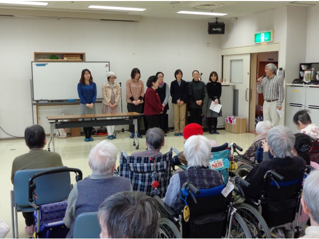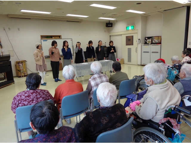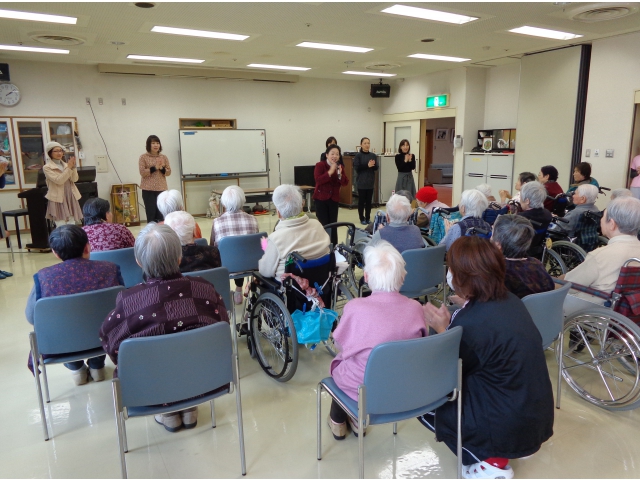 平成26年2月19日(水)日東保育園 園長様はじめ、父母の会様11名にご来苑いただき、歌や紙芝居、ハンドベルのご披露、手遊びなどによる交流会が開かれました。