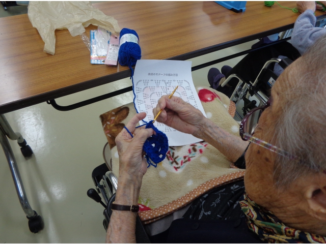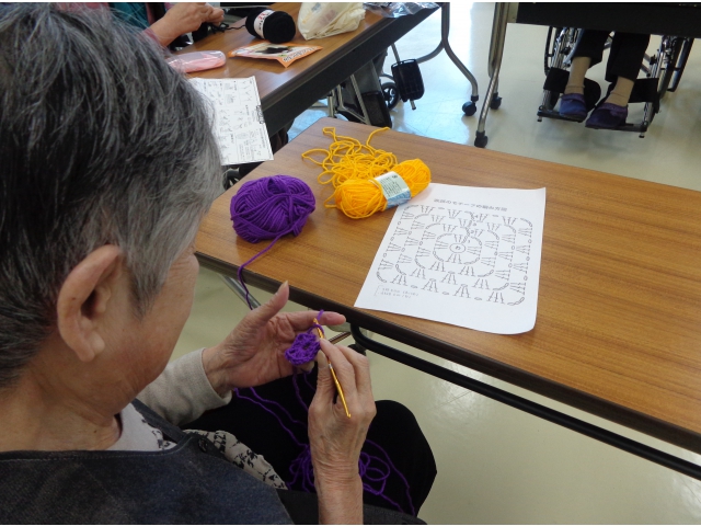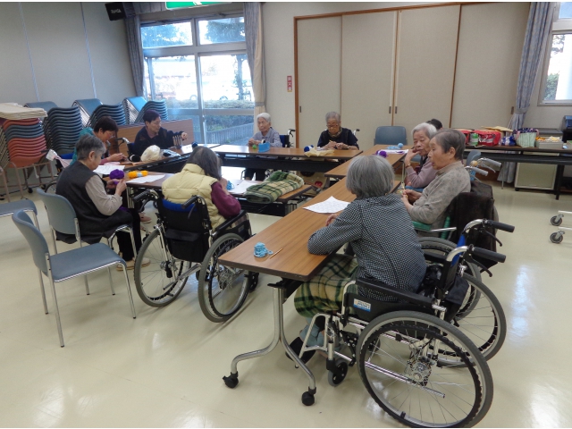 東郷苑では、今年より編み物クラブが発足しました。ご利用者の方の中には、以前編み物をされていた方もおられ、皆さんで昔話に花を咲かせつつ、参加されています。