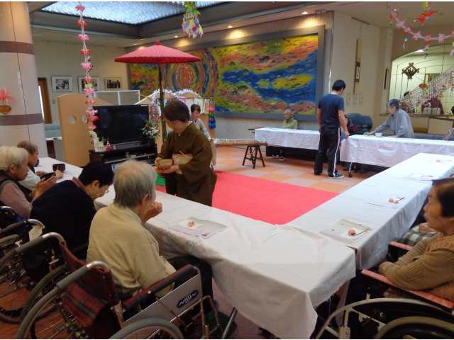 大正琴の美しい音色に酔いながら、和菓子とお抹茶を堪能されました。