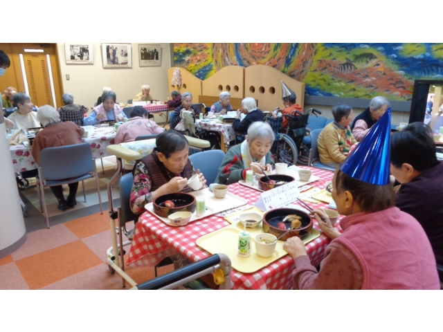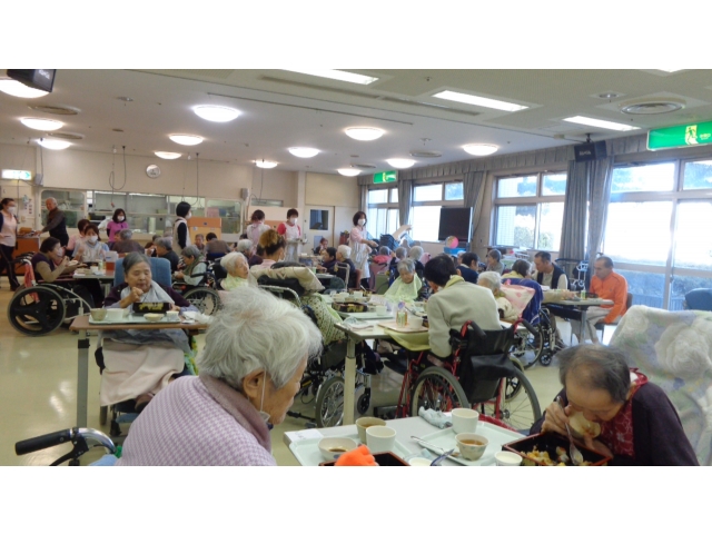 平成27年2月4日(水)本日は、ご利用者の方お待ちかねの寿司バイキングが行われました。例年ご協力いただいております都寿司の職人さんたちにご来苑いただき、お寿司屋さんの開店です。