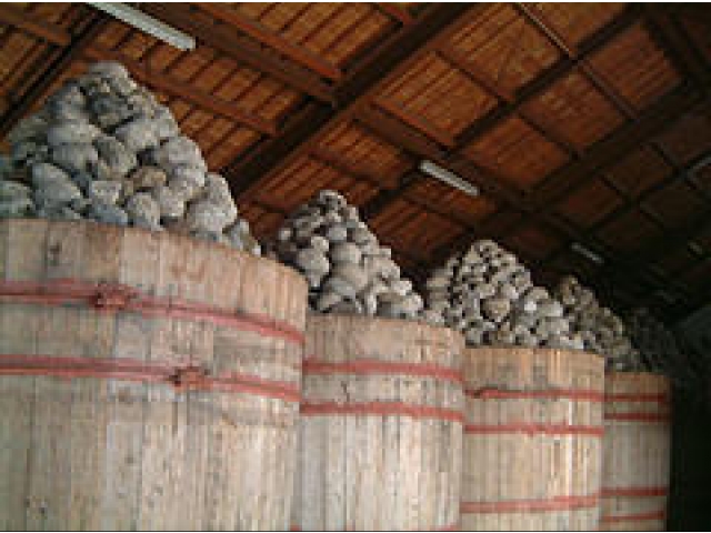 - 桶の上の重石は、地震がきても崩れないそうです。まさに職人技!!