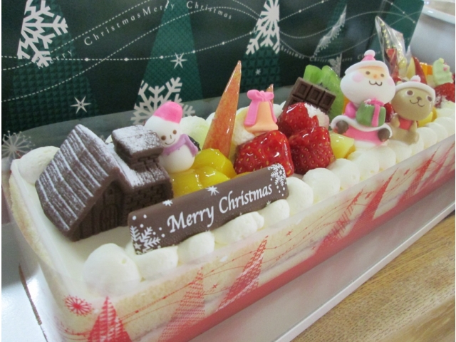 その後、シャンメリーで乾杯し、かわいくデコレーションされたクリスマスケーキをいただきました。栄養士さん特製のリンゴのコンポートも大好評!!