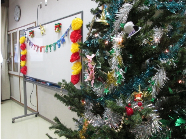 大きなツリーを飾り、会場は華やかに飾りつけられました。