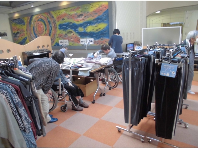 また全体会の後は、ロビーで衣類販売を行い「この色がいいね」「靴も欲しいなぁ」と、お買い物を楽しんでいただきました。