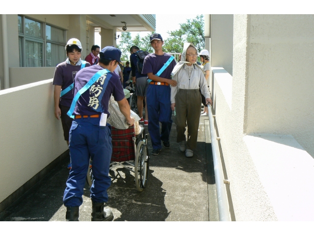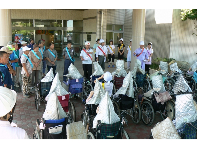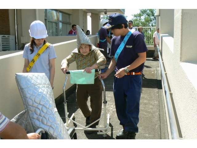 9月2日(土)に地域住民の皆様、尾三消防署の職員さんをお招きして、総合防災訓練を行いました。地震によって厨房から火災が発生という想定の元、避難訓練を行い、地域住民の皆様にもご協力いただいて、避難誘導の体験をしていただきました。
