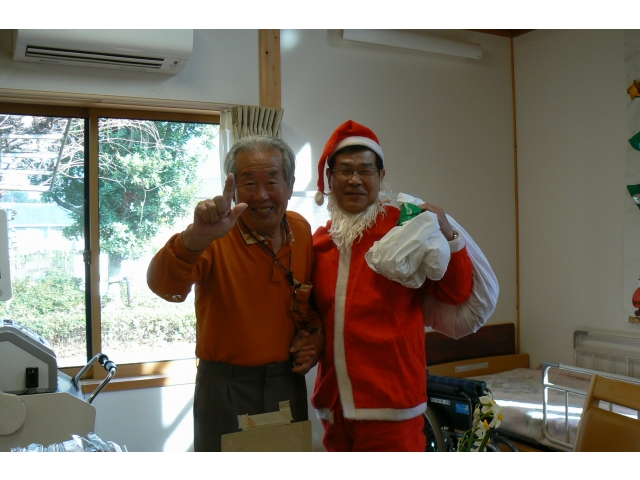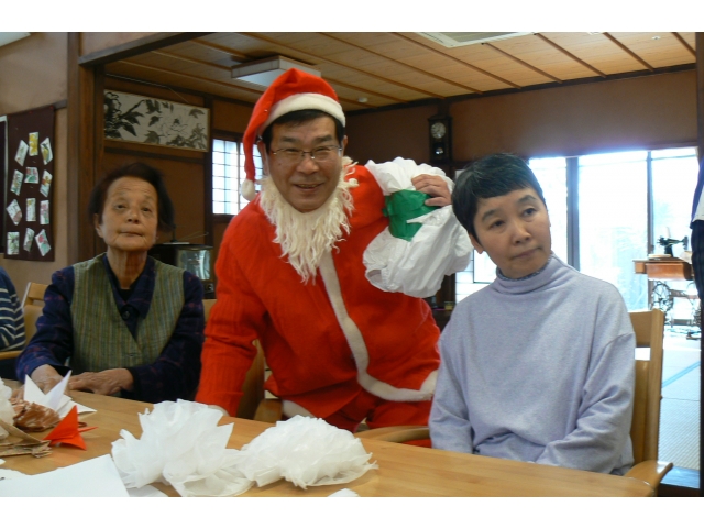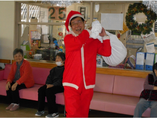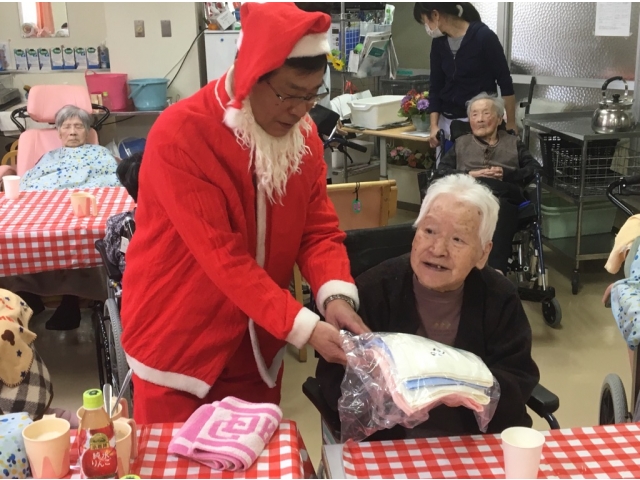 12月25日に東郷苑、東郷庵(デイサービス)にてクリスマス会を行いました。苑長サンタが食堂、デイフロアに登場し、利用者の皆様にプレゼントを手渡したり、記念撮影に応じていました。利用者様からは「プレゼントなんてもらっていいのかねぇ。嬉しくなっちゃう!」や「サンタと写真を撮ったって孫に自慢する!!」と大喜びされていました。また来年もサンタに会えるように毎日元気に過ごしていきましょう!!